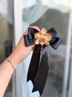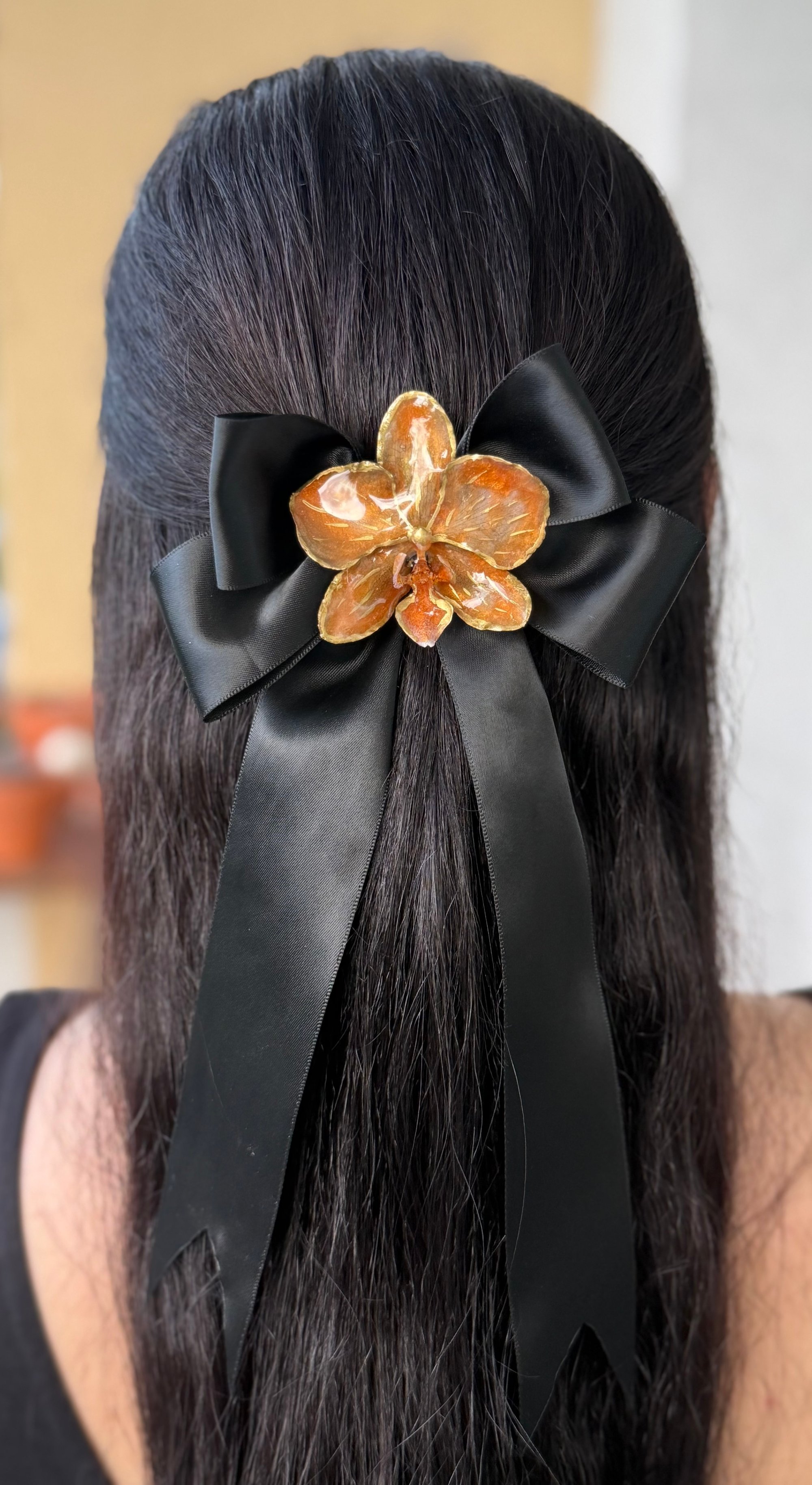 Este bello accesorio es una combinación de la tendencia de los lazos y el arte de la naturaleza encapsuladas en resina. Con un toque de belleza real